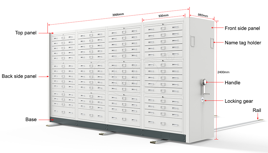 | Product name | Hand-rotating mechanical assist mobile specimen shelving system |
